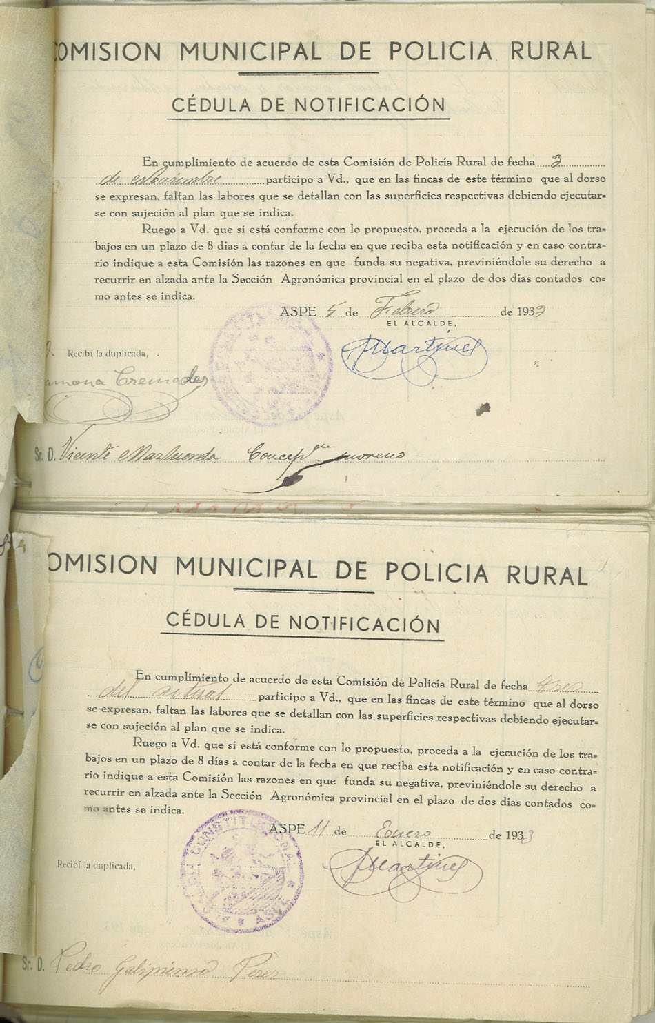 Actas y antecedentes de la Comisión de la Policía Rural, 1933