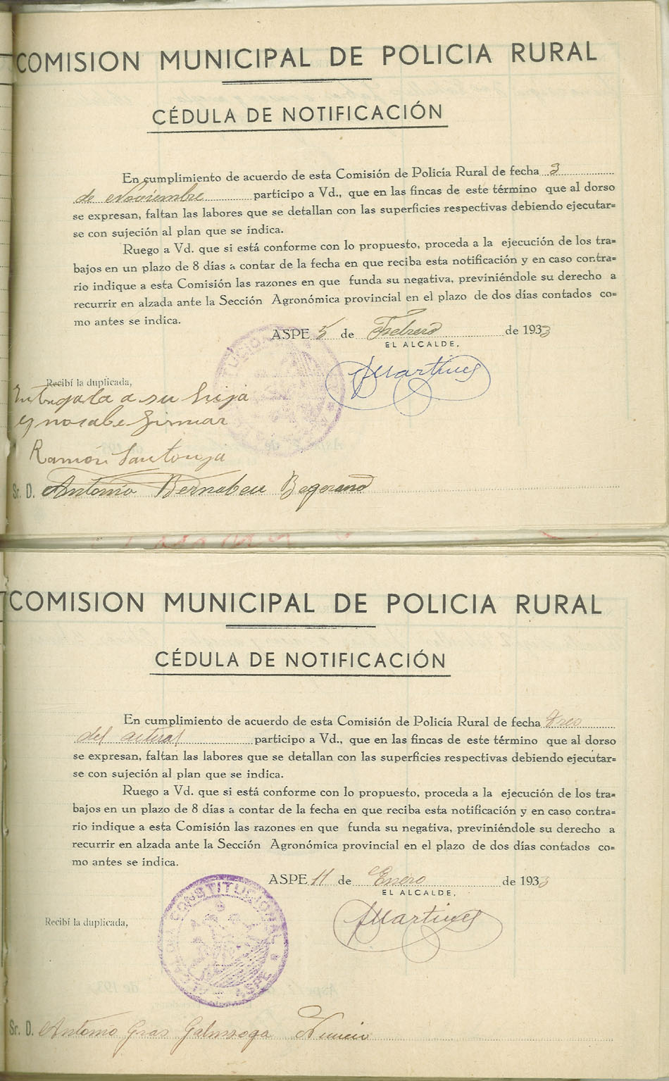 Actas y antecedentes de la Comisión de la Policía Rural, 1933