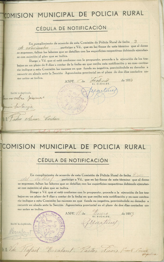 Actas y antecedentes de la Comisión de la Policía Rural, 1933