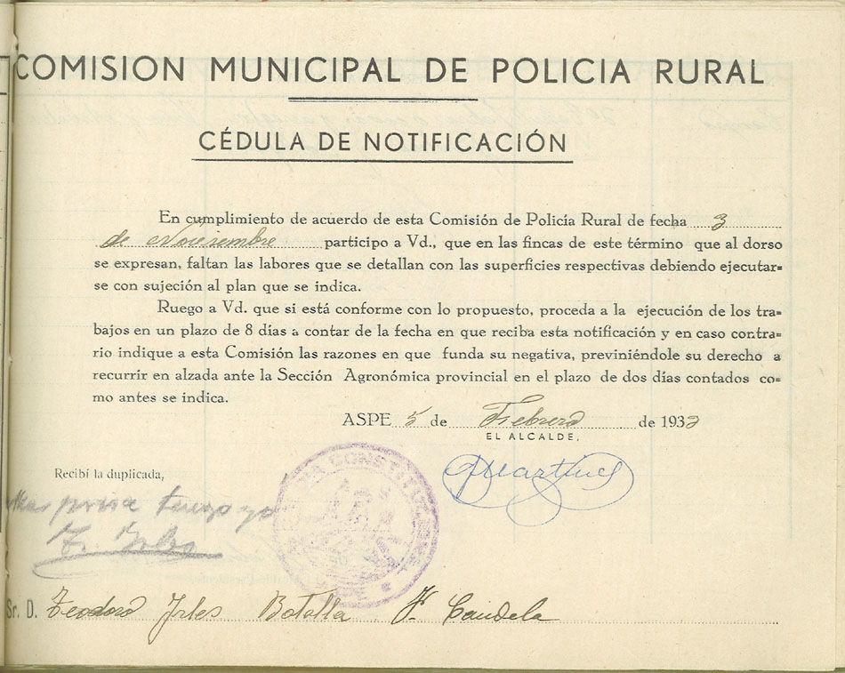 Actas y antecedentes de la Comisión de la Policía Rural, 1933