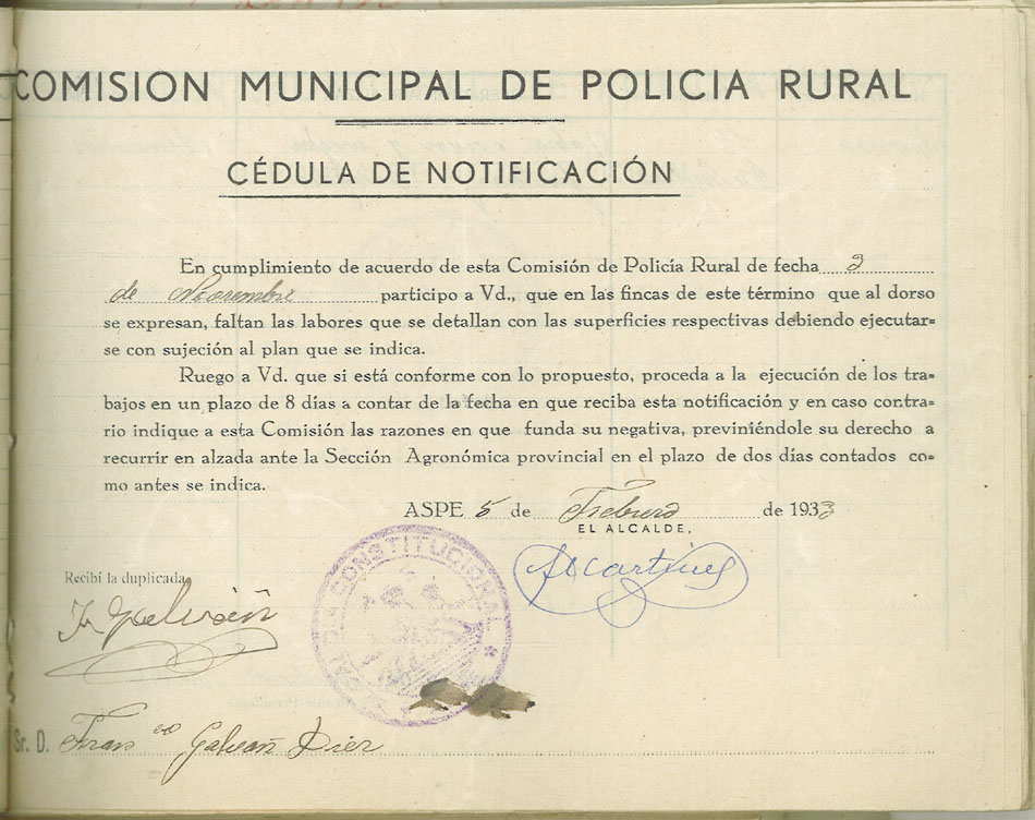 Actas y antecedentes de la Comisión de la Policía Rural, 1933