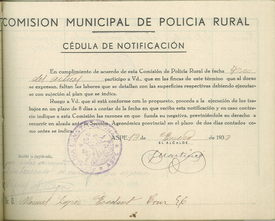 Actas y antecedentes de la Comisión de la Policía Rural, 1933
