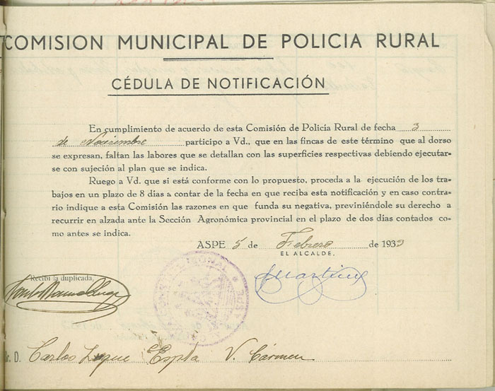 Actas y antecedentes de la Comisión de la Policía Rural, 1933
