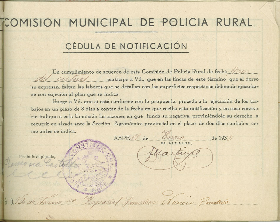 Actas y antecedentes de la Comisión de la Policía Rural, 1933