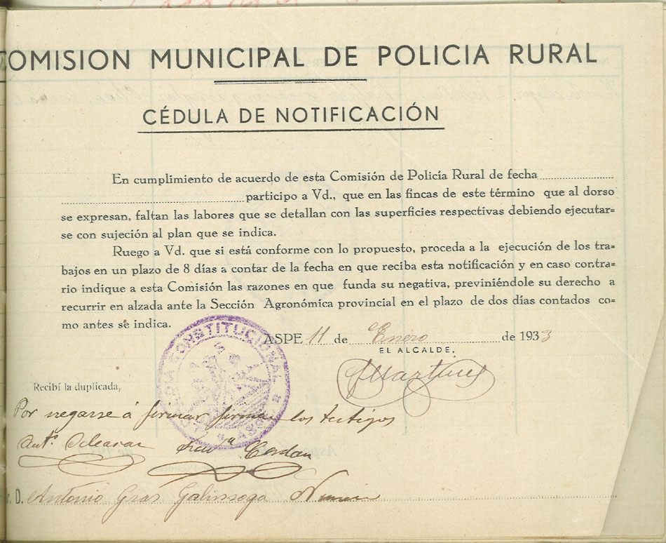 Actas y antecedentes de la Comisión de la Policía Rural, 1933