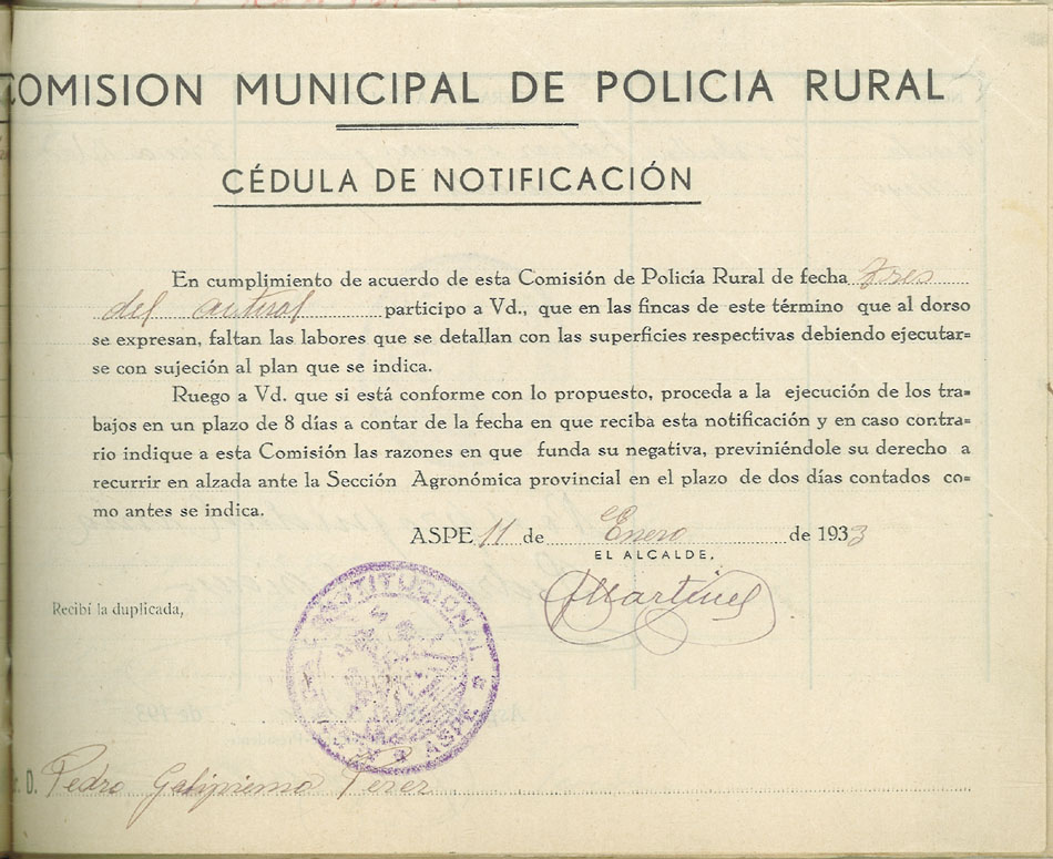 Actas y antecedentes de la Comisión de la Policía Rural, 1933