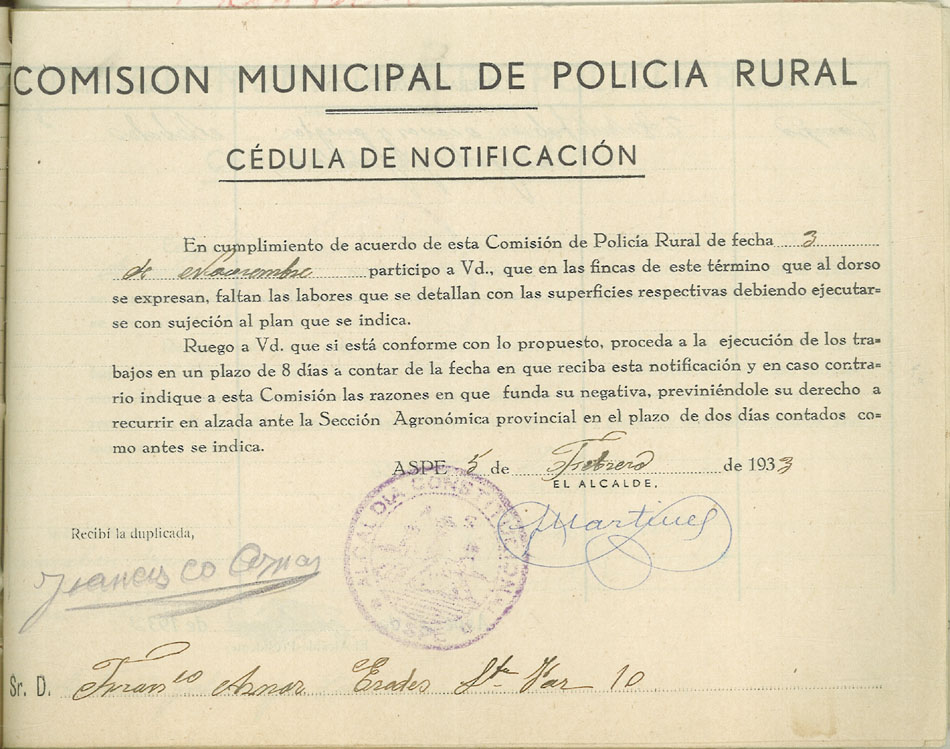 Actas y antecedentes de la Comisión de la Policía Rural, 1933