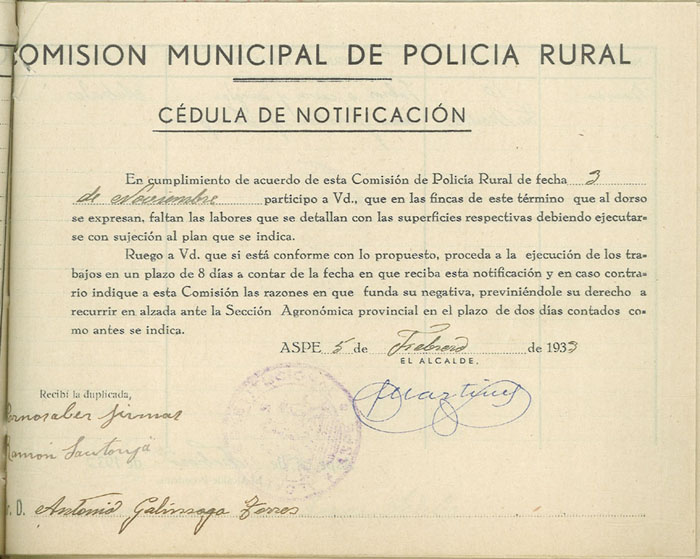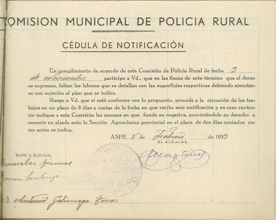 Actas y antecedentes de la Comisión de la Policía Rural, 1933