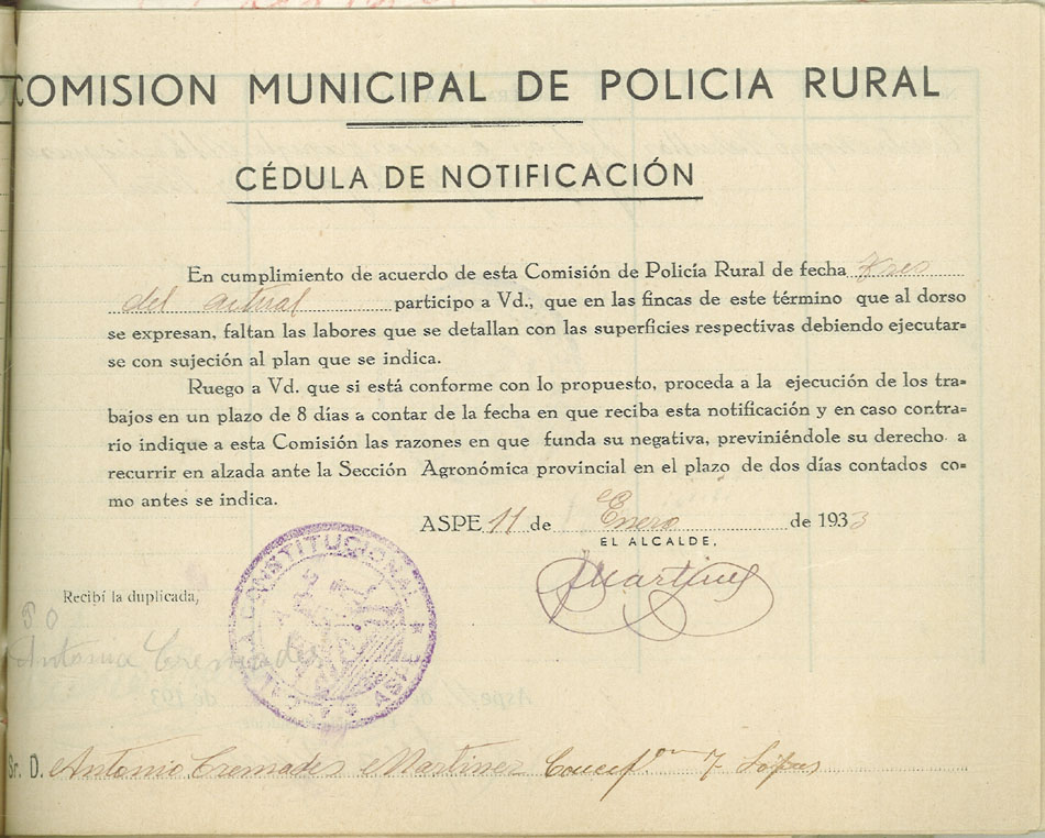 Actas y antecedentes de la Comisión de la Policía Rural, 1933