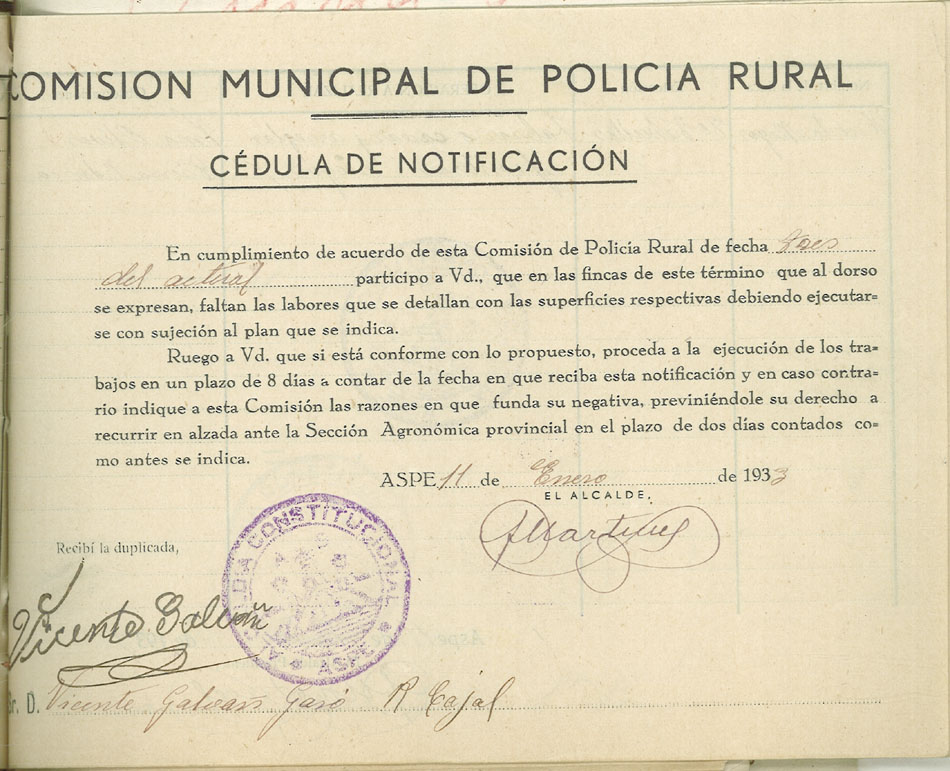 Actas y antecedentes de la Comisión de la Policía Rural, 1933