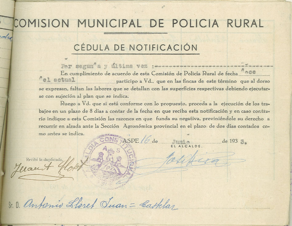 Actas y antecedentes de la Comisión de la Policía Rural, 1933