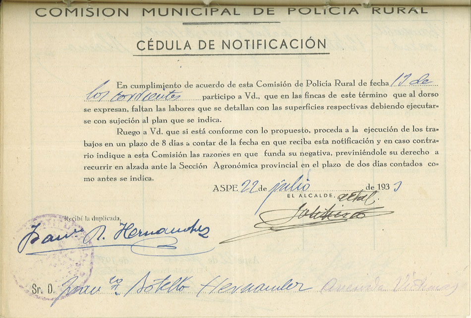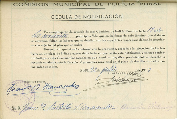 Actas y antecedentes de la Comisión de la Policía Rural, 1933