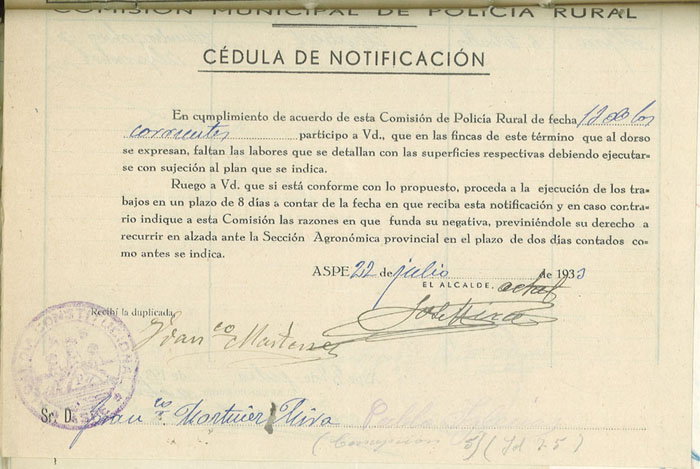 Actas y antecedentes de la Comisión de la Policía Rural, 1933
