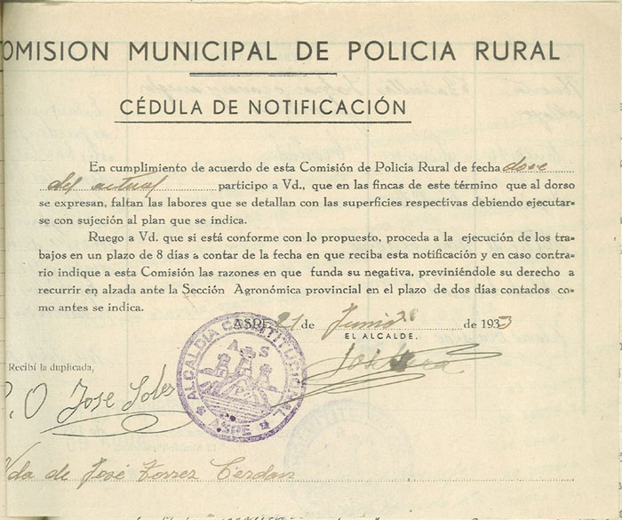 Actas y antecedentes de la Comisión de la Policía Rural, 1933