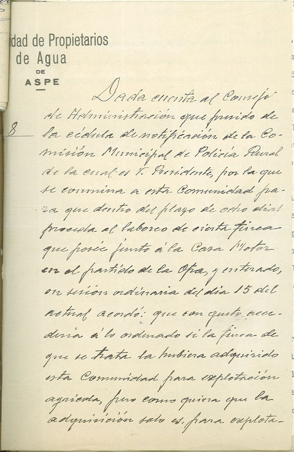 Actas y antecedentes de la Comisión de la Policía Rural, 1933