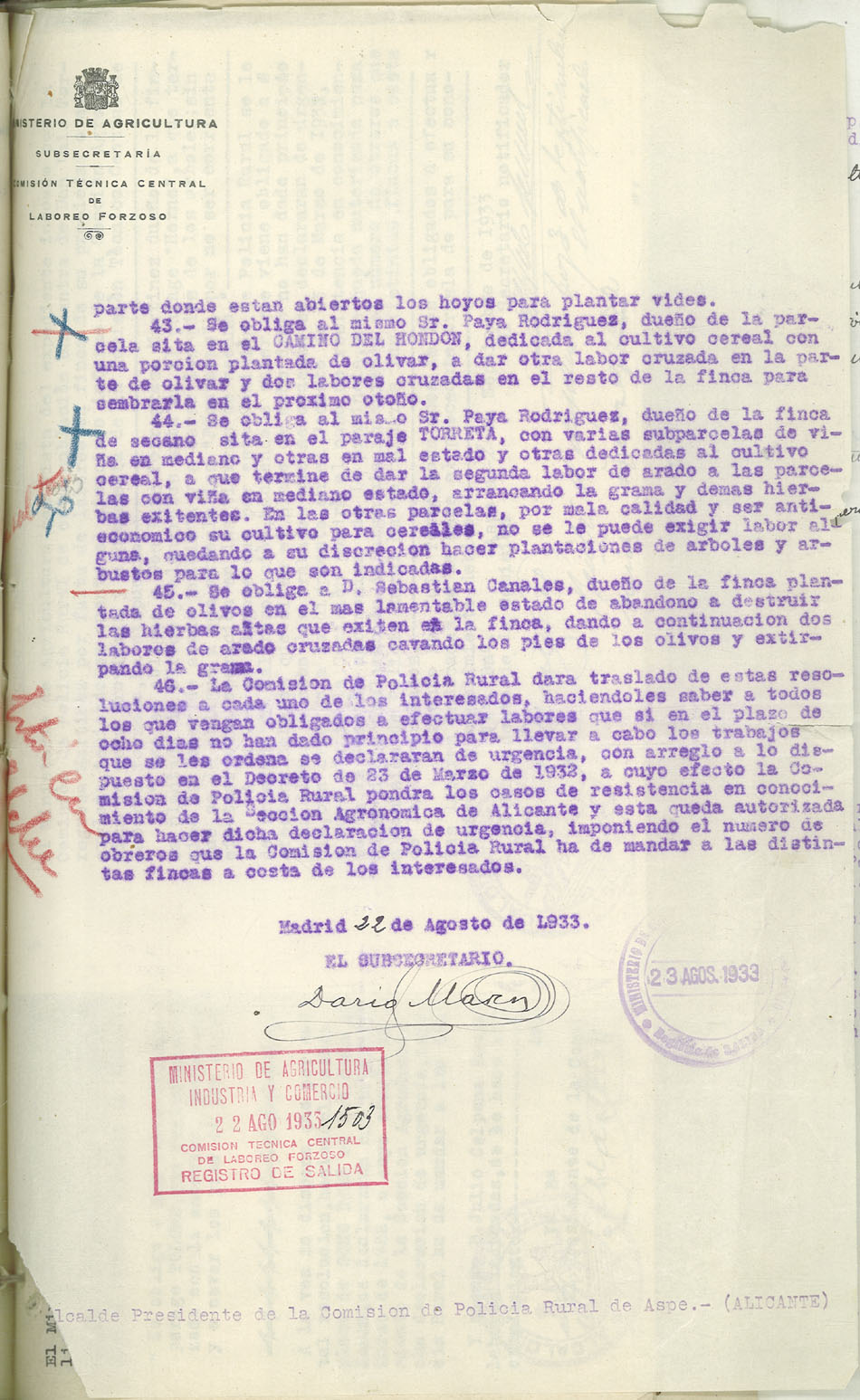 Actas y antecedentes de la Comisión de la Policía Rural, 1933