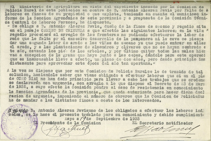 Actas y antecedentes de la Comisión de la Policía Rural, 1933