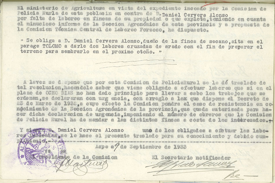 Actas y antecedentes de la Comisión de la Policía Rural, 1933