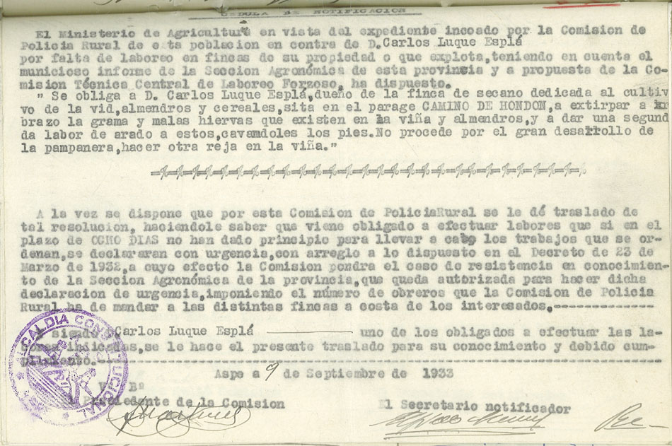 Actas y antecedentes de la Comisión de la Policía Rural, 1933