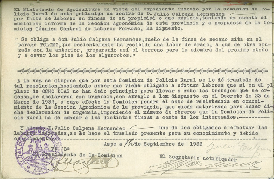 Actas y antecedentes de la Comisión de la Policía Rural, 1933