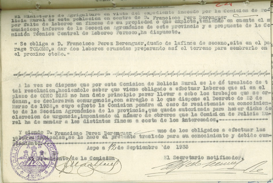 Actas y antecedentes de la Comisión de la Policía Rural, 1933