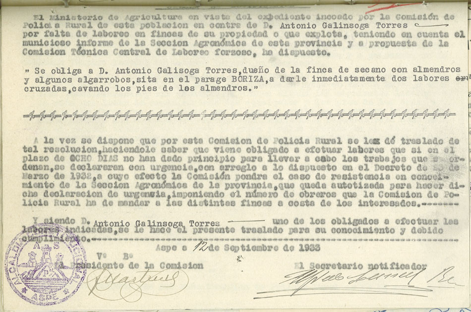 Actas y antecedentes de la Comisión de la Policía Rural, 1933