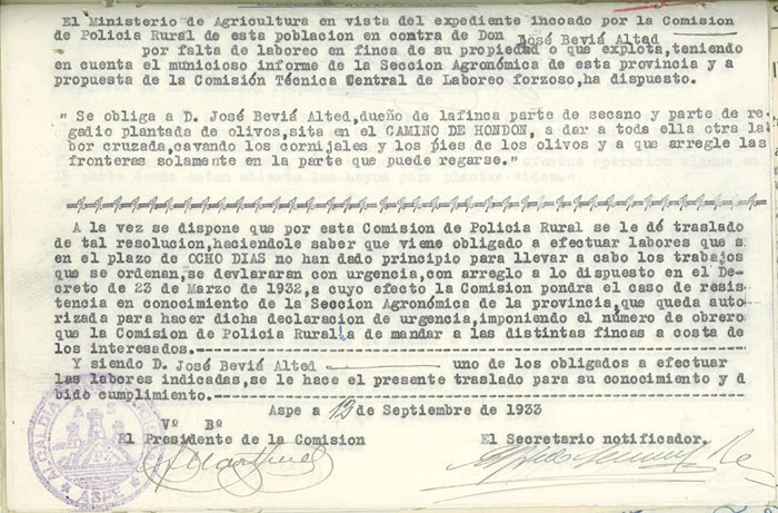 Actas y antecedentes de la Comisión de la Policía Rural, 1933