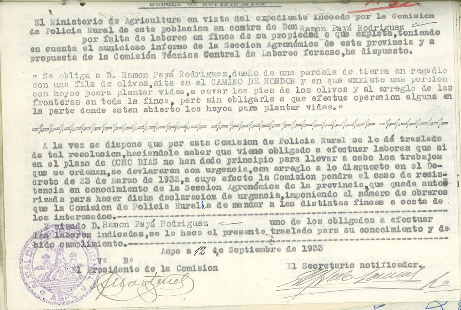 Actas y antecedentes de la Comisión de la Policía Rural, 1933