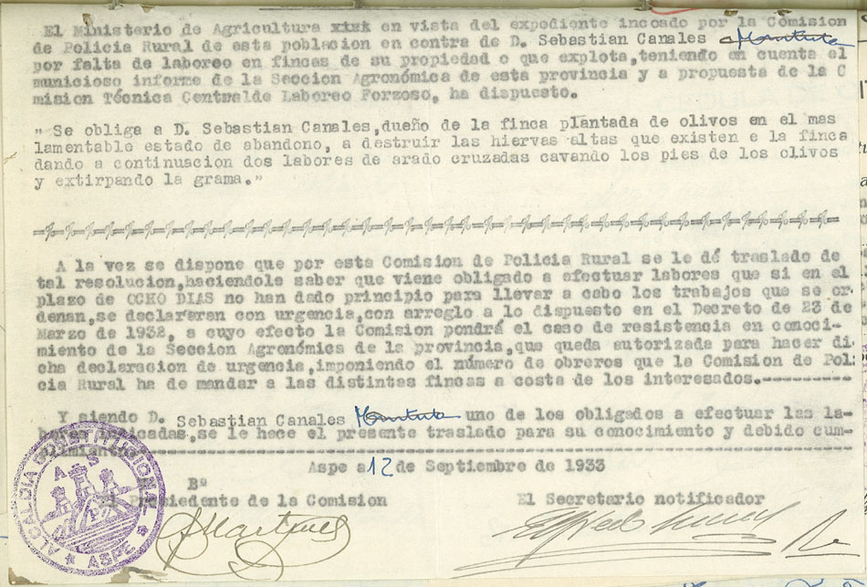Actas y antecedentes de la Comisión de la Policía Rural, 1933