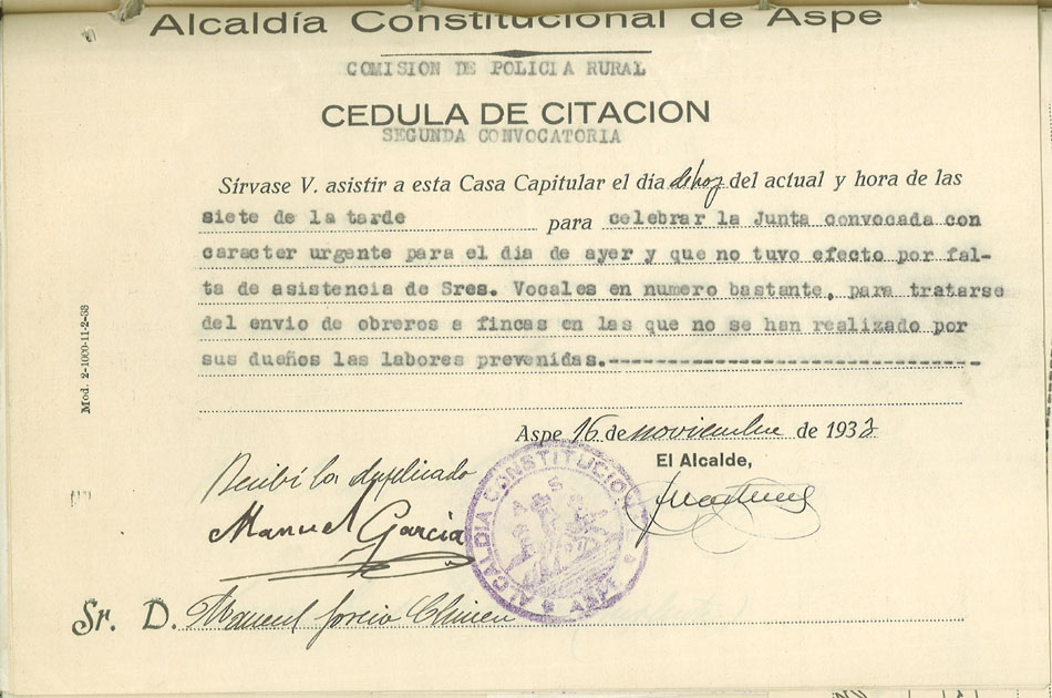 Actas y antecedentes de la Comisión de la Policía Rural, 1933
