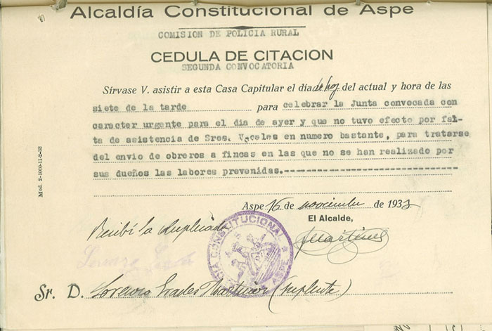 Actas y antecedentes de la Comisión de la Policía Rural, 1933
