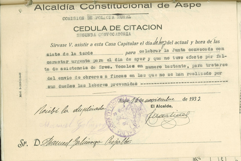 Actas y antecedentes de la Comisión de la Policía Rural, 1933