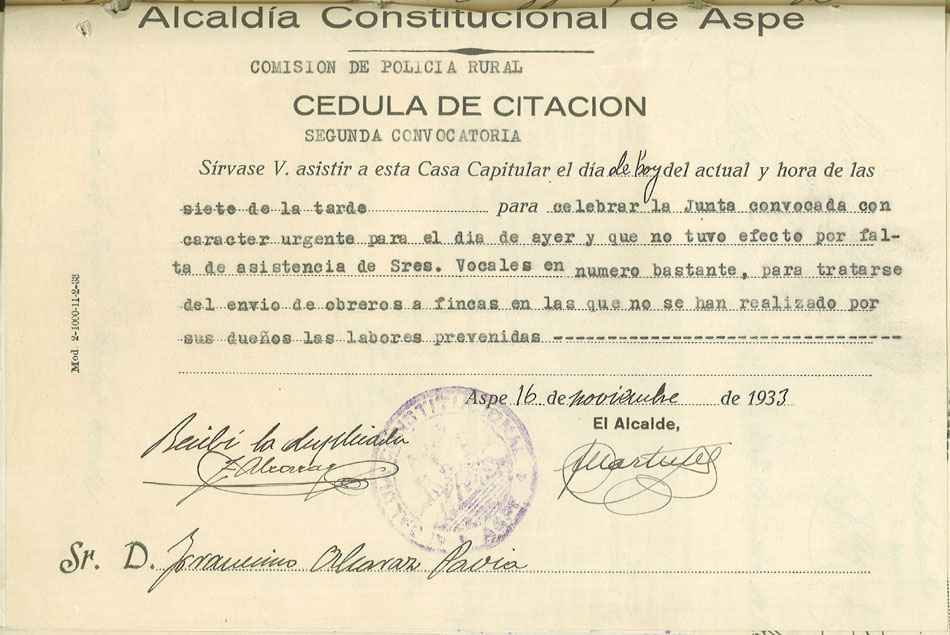 Actas y antecedentes de la Comisión de la Policía Rural, 1933