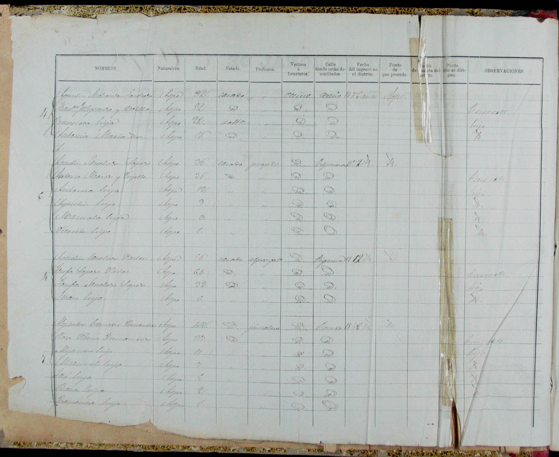 Padrón de habitantes, 1867
