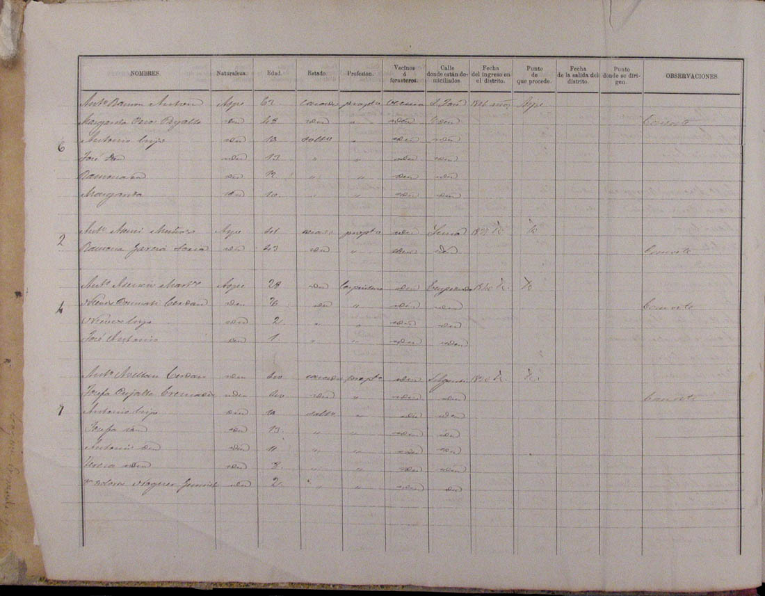Padrón de habitantes, 1867