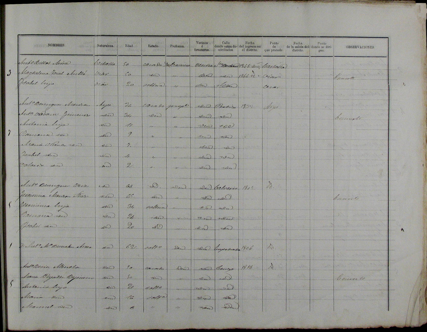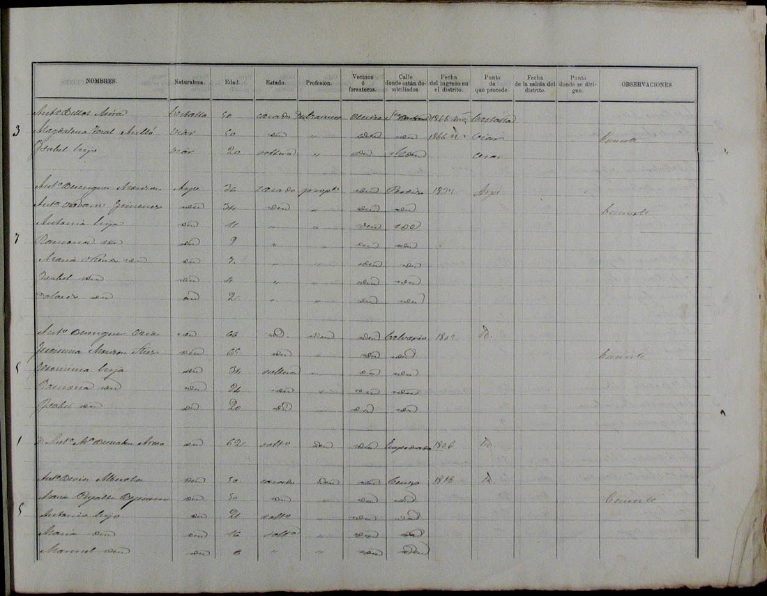 Padrón de habitantes, 1867