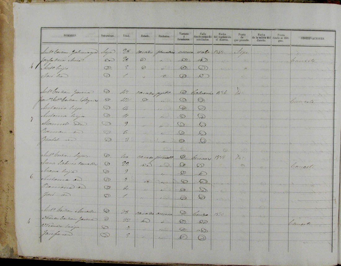 Padrón de habitantes, 1867