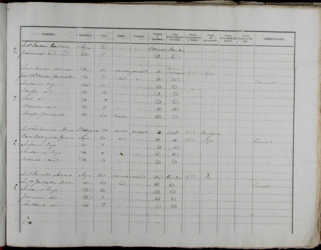 Padrón de habitantes, 1867