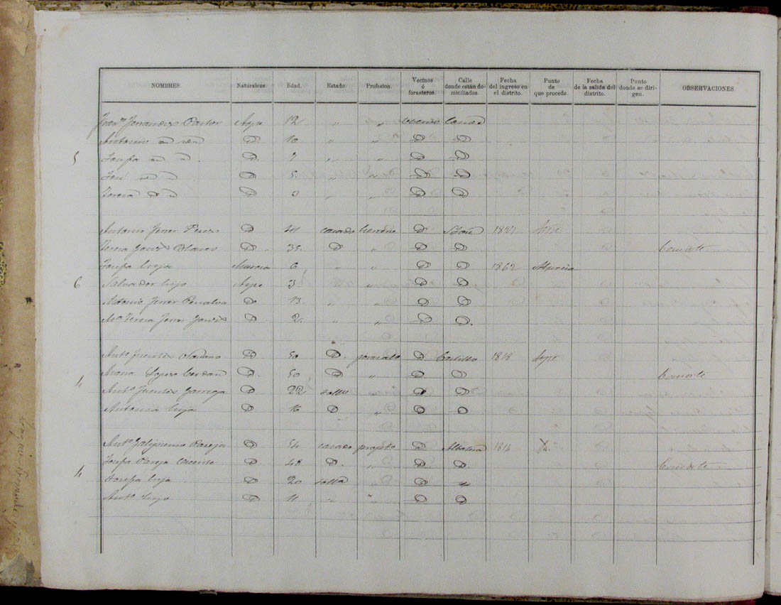 Padrón de habitantes, 1867