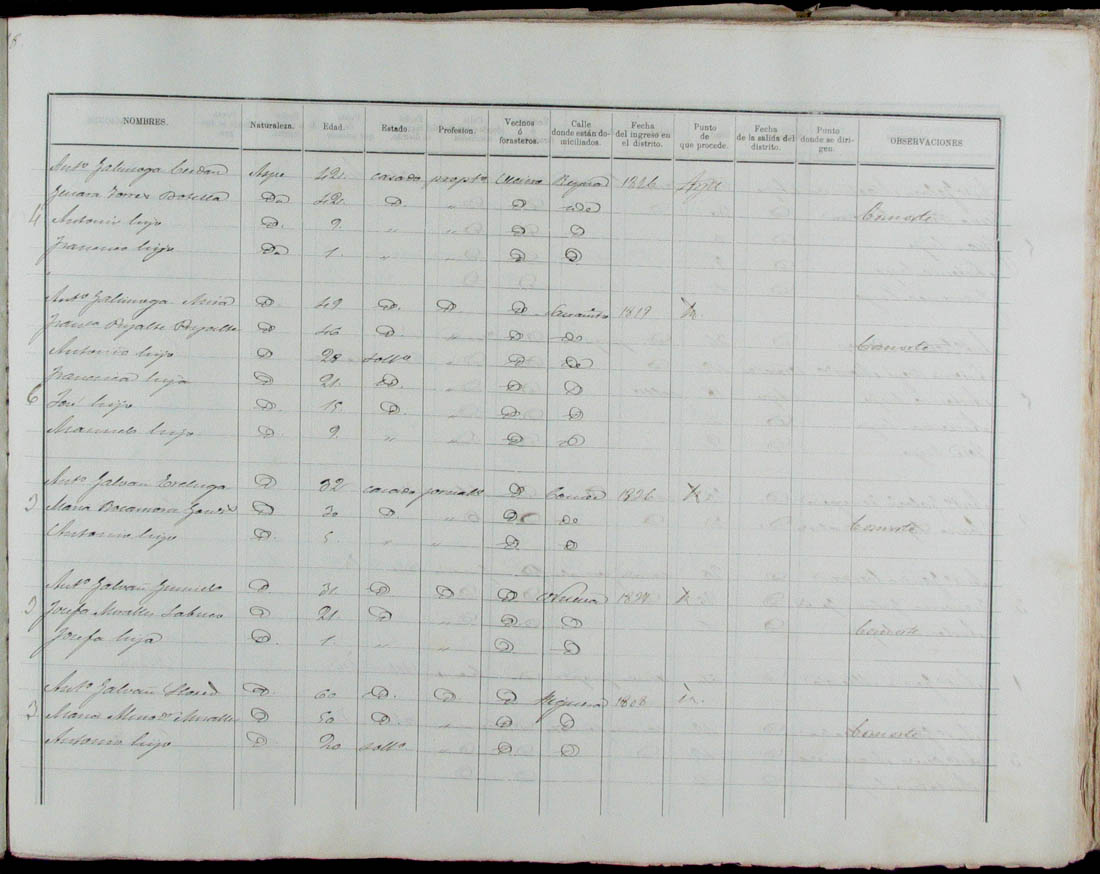 Padrón de habitantes, 1867