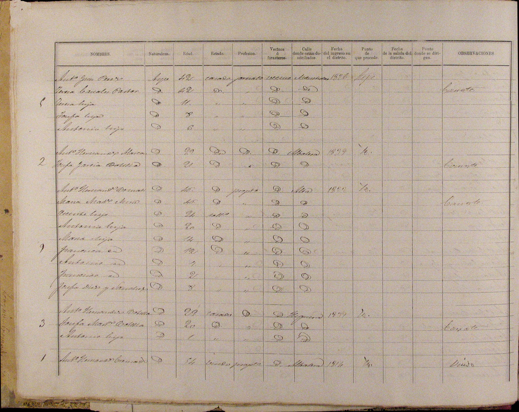 Padrón de habitantes, 1867