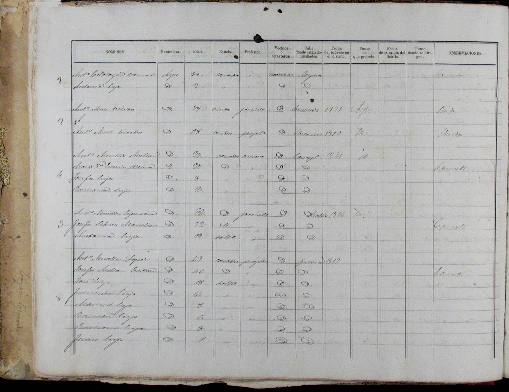 Padrón de habitantes, 1867