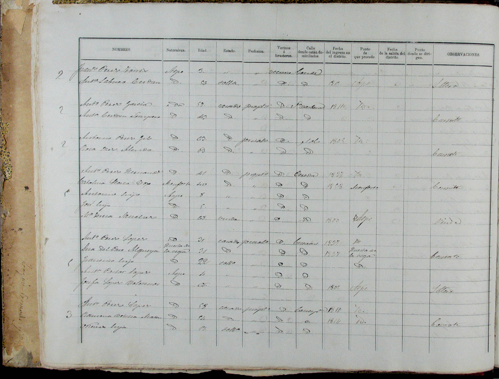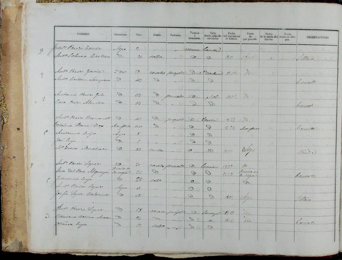 Padrón de habitantes, 1867