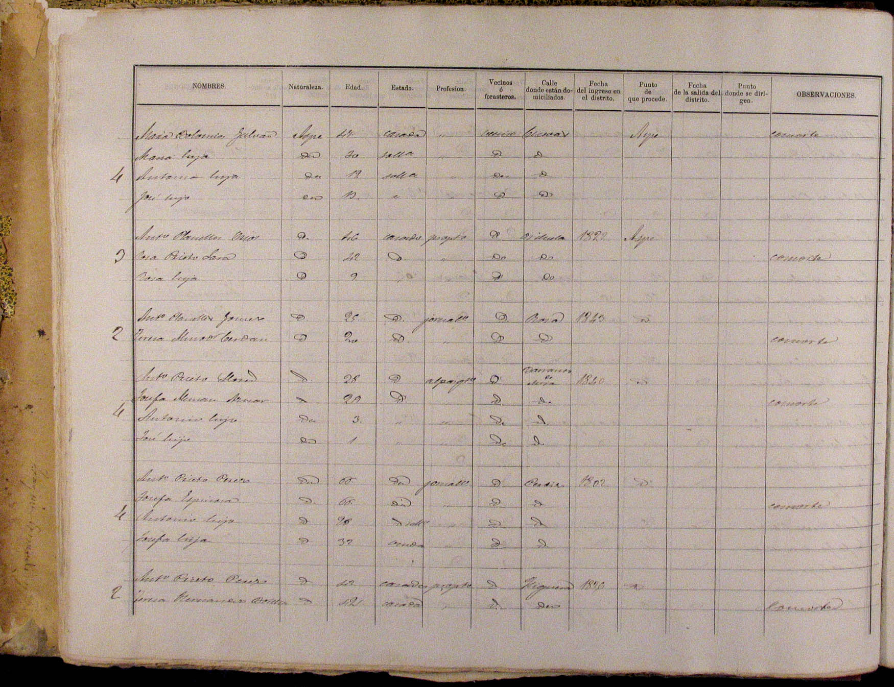 Padrón de habitantes, 1867