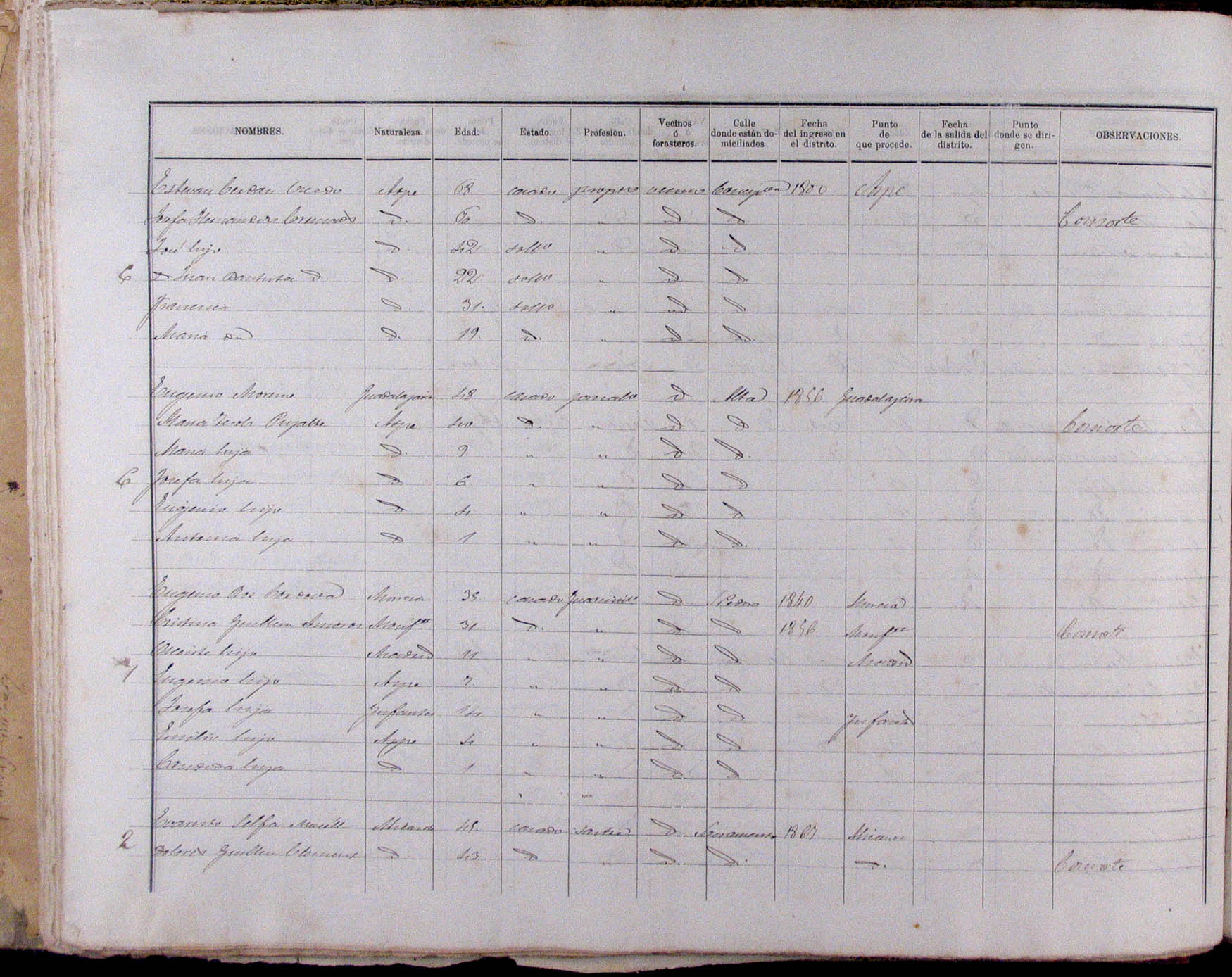 Padrón de habitantes, 1867