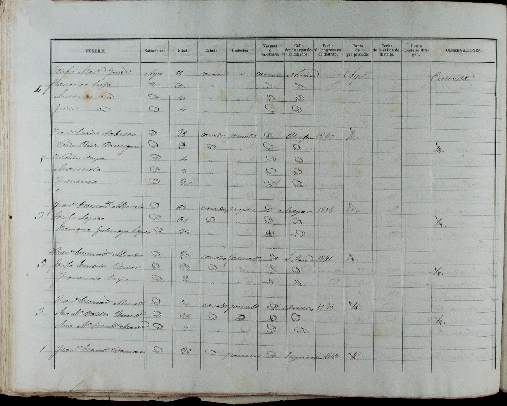 Padrón de habitantes, 1867
