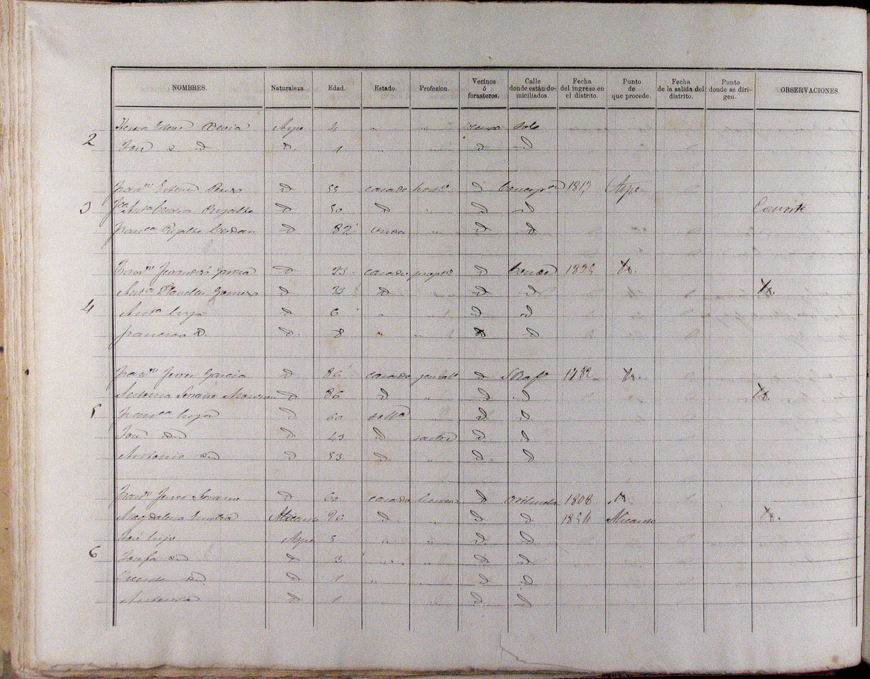 Padrón de habitantes, 1867