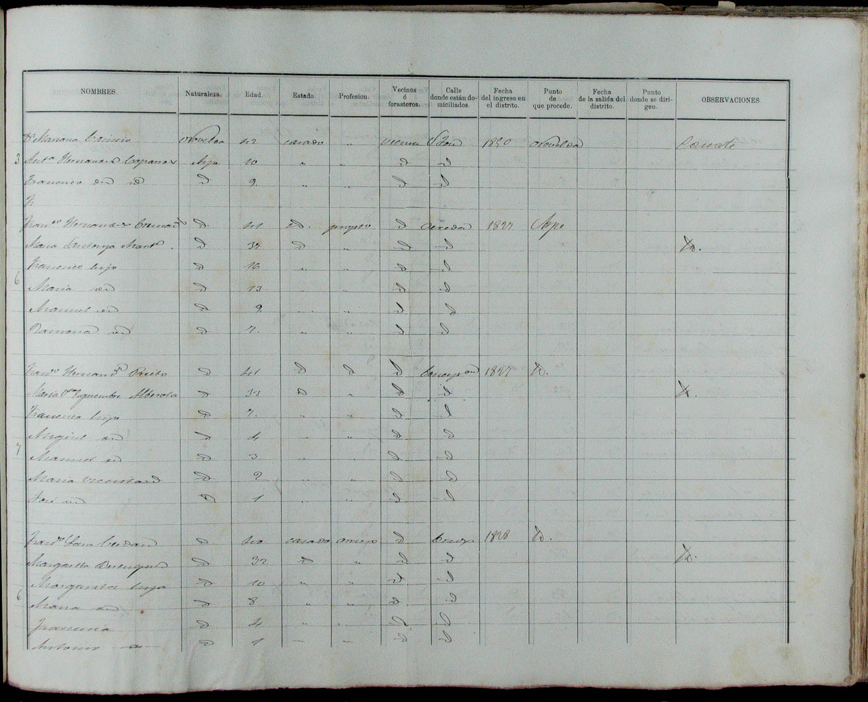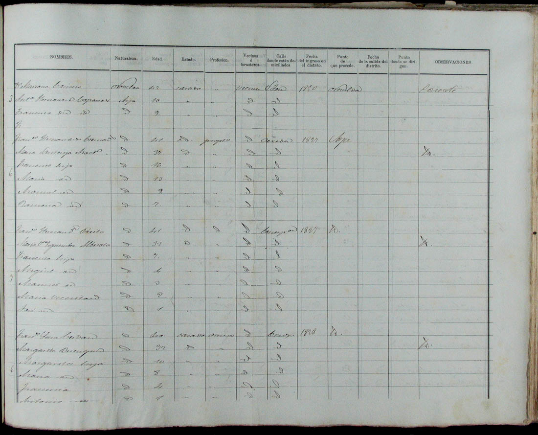 Padrón de habitantes, 1867
