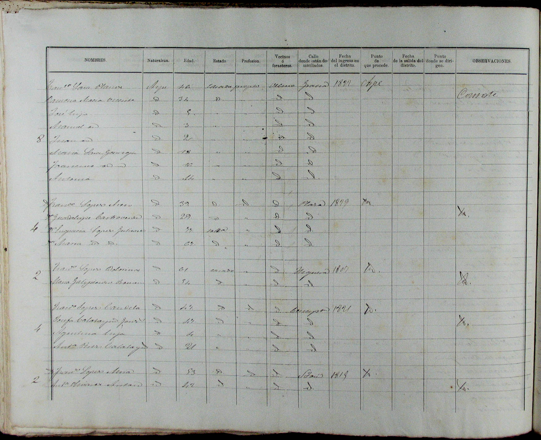 Padrón de habitantes, 1867