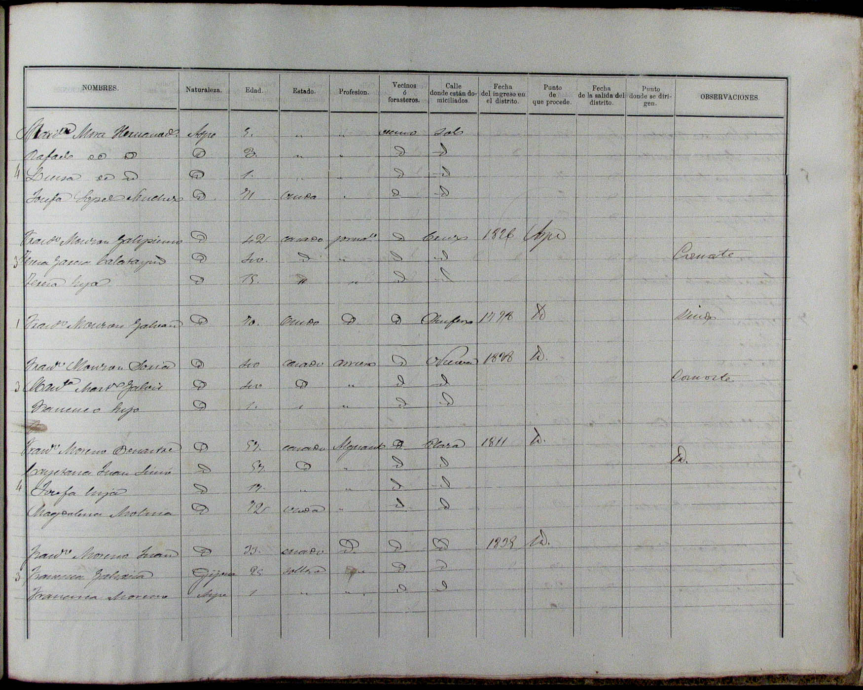 Padrón de habitantes, 1867